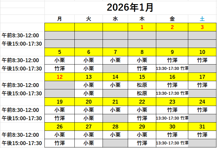2026年1月外来担当表 2026.01.01 2026.01.15 診療情報 Post Share Hatena Pocket RSS feedly Pin it 記事のタイトルとURLをコピーする 2026年1月の外来担当表です。 記事のタイトルとURLをコピーする Post Share Hatena Pocket RSS feedly Pin it 2025年12月外来担当表 前の記事