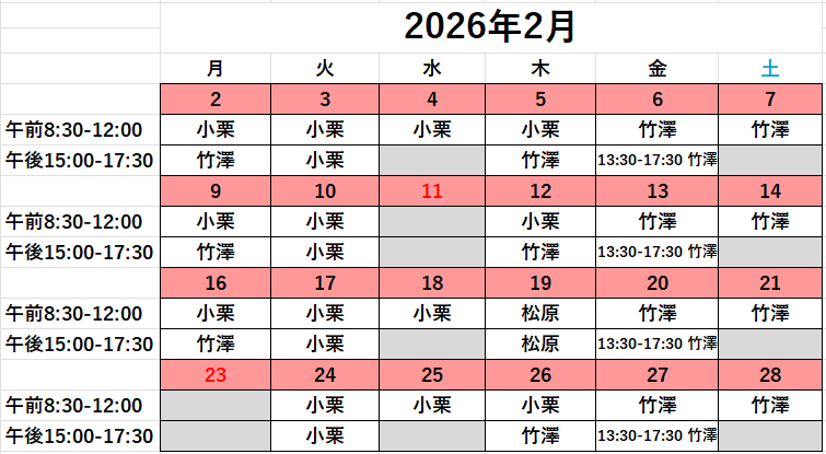 2026年2月外来担当表 2026.02.01 2026.03.25 診療情報 Post Share Hatena Pocket RSS feedly Pin it 記事のタイトルとURLをコピーする 2026年2月の外来担当表です。 記事のタイトルとURLをコピーする Post Share Hatena Pocket RSS feedly Pin it 2026年1月外来担当表 前の記事 2026年3月外来担当表 次の記事
